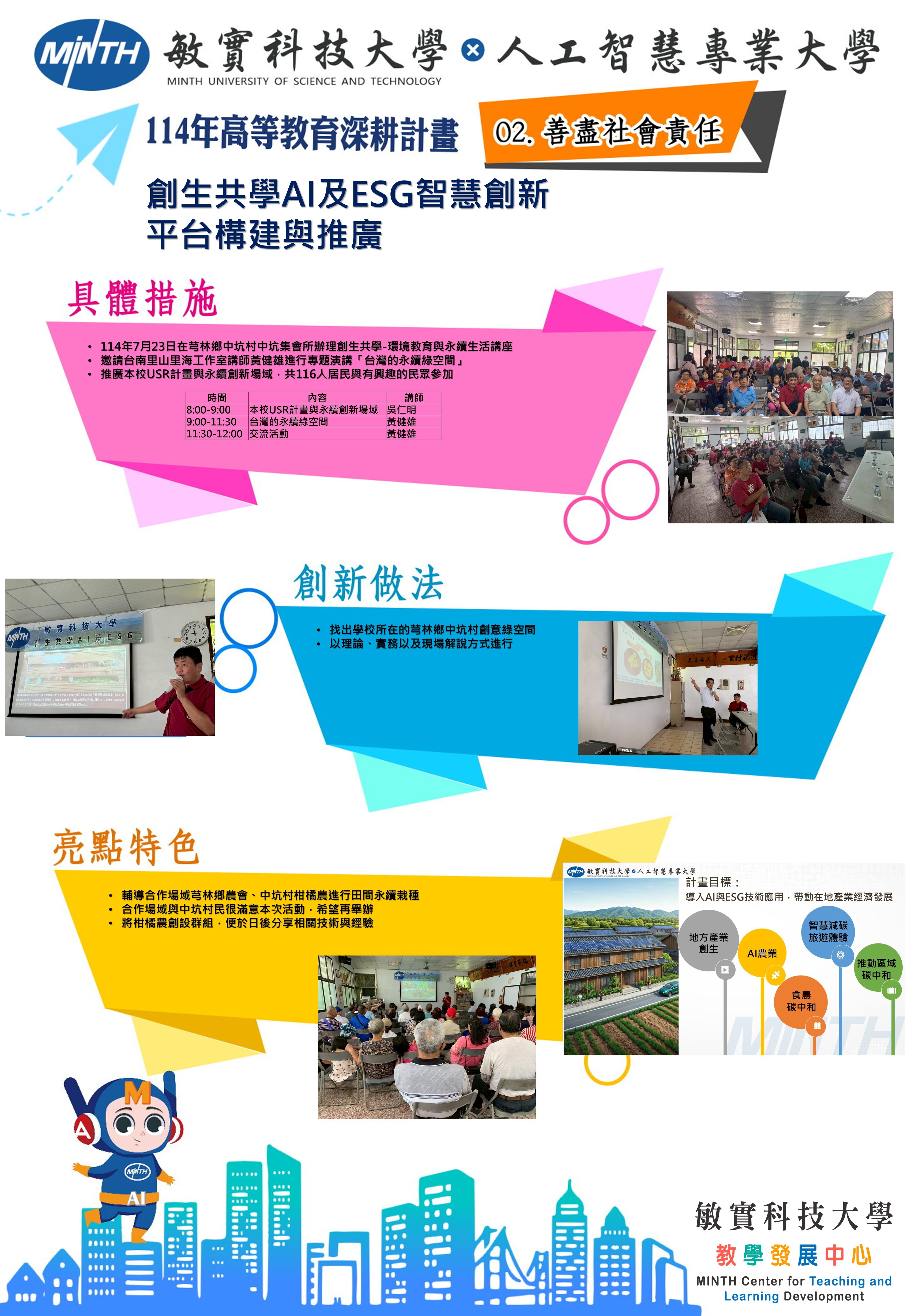 B1-1 創生共學AI及ESG智慧創新平台構建與推廣 |
